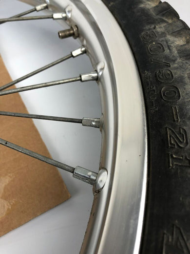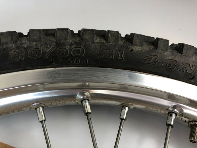 vordere Speichenfelge mit Stollenreifen, Derbi/Aprilia/Gilera, 80/90-21, 12mm Achsdurchmesser