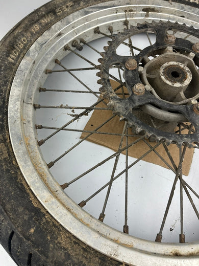 hintere Speichenfelge mit SM Reifen, Derbi/Aprilia/Gilera, 110/80-18, 12mm Achsdurchmesser