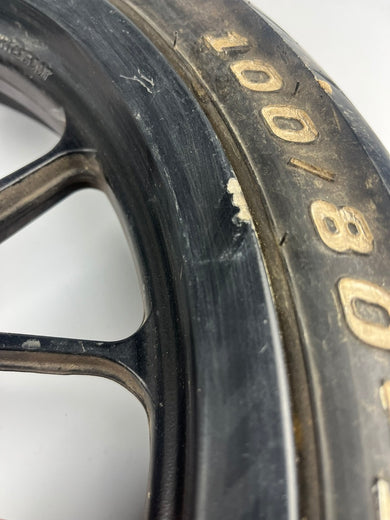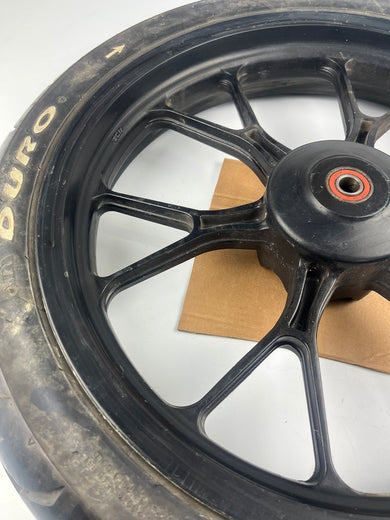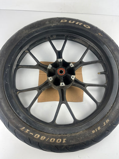 vordere Gussfelge mit Reifen, Derbi/Aprilia ab 2011, 100/80-17, 15mm Achsdurchmesser