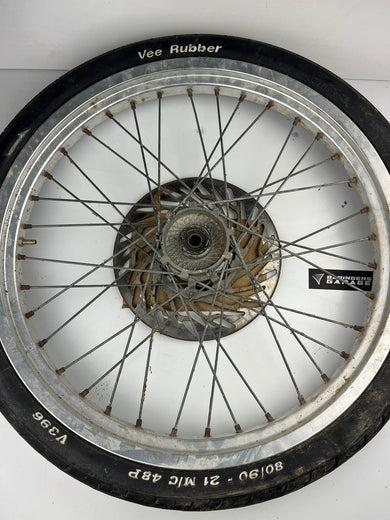 vordere Speichenfelge mit SM Reifen, Derbi/Aprilia/Gilera, 80/90-21, 12mm Achsdurchmesser